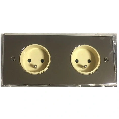Descriptif : Collection Mémoire d’Arnould – Dimensions : 160 x 75 mm – Fixation par 2 vis fournies – 2 prises 2P+T – Couleur finition Acier mirroir.
