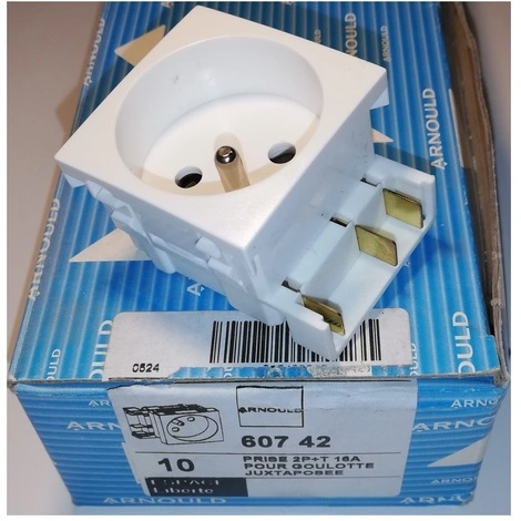 Informations: Réf.: 60742. Prise 2P+T pour goulotte juxtaposée. Série: Liberté. Couleur: Blanc. Poids: 0,04kg. Intensité: 16A.