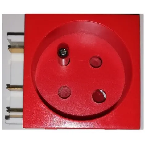 Prise 2P+T à détrompage. Pour goulotte juxtaposée. Intensité: 16A. Tension: 250V. Couleur: Rouge.