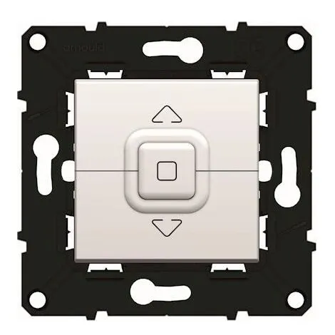 Mécanisme de commande de volets roulants, stores et bannes. Gamme: Espace Evolution. Livré avec coque de protection de chantier. Couleur : blanc. 2 fils. Dimensions (mm) : 73 x 73 x 36. Tension : 250 VAC. Fixation avec vis. Nombre de pôle: 1. Tension nominale: 250V. Nombre de touches: 2. Courant: 6A.