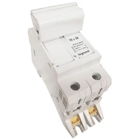 SP 38 pour cartouches industrielles 10 x 38. Se fixent sur rail asymétrique avec laccessoire réf. 364 78. Raccordement : 1 x 16 mm² ou 2 x 10 mm². Nbre de modules : 2. Tension nominale: 400V.