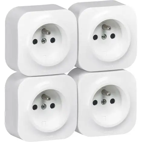 Livraison offerte à partir de 90 euros d’achats chez ce marchand. Lot de 4 prise 2 pôles + terre saillie Profil. Coloris Blanc, matière plastique, finition satiné. Hauteur 75mm, Largeur 73mm, Profondeur 40mm.